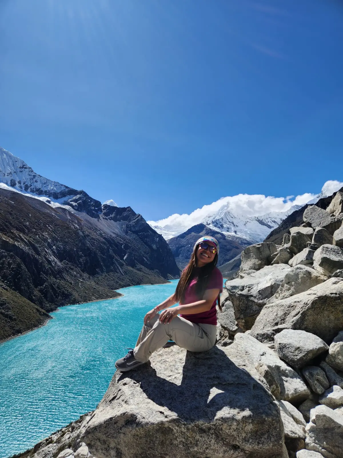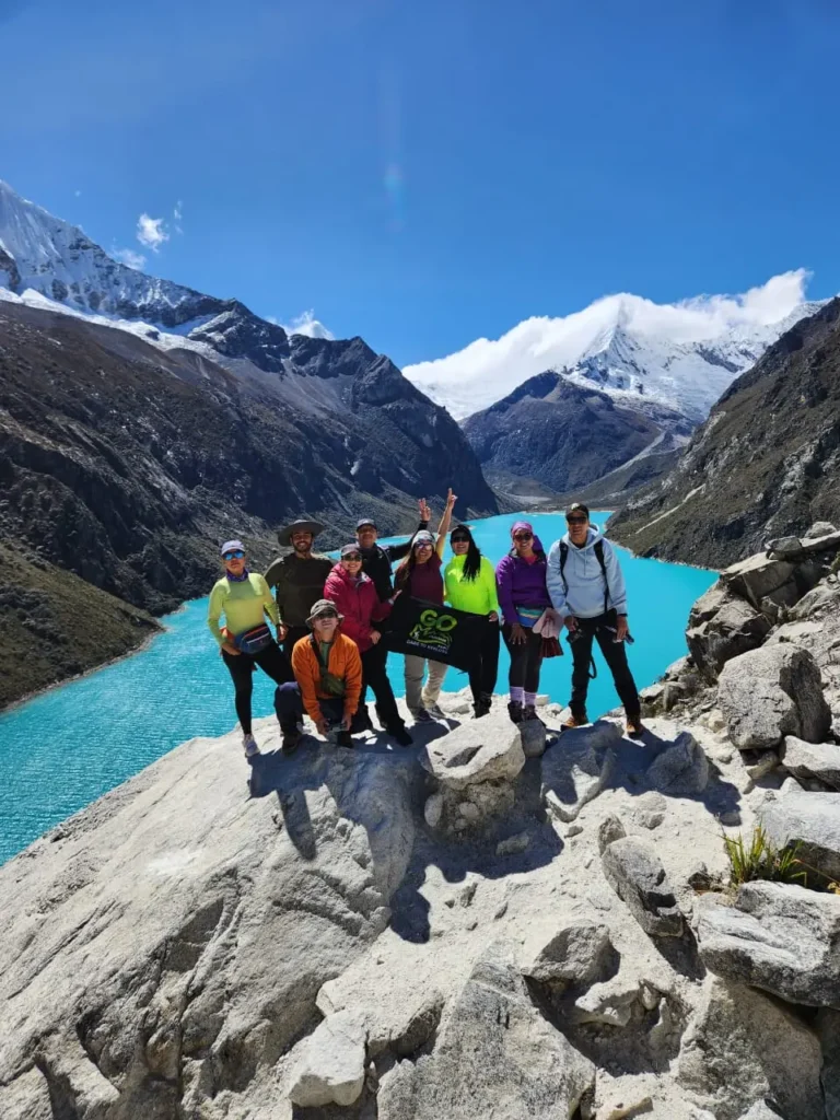 3. Learn about the fascinating geological formation of the lake and its surrounding giants: Pirámide de GarcilasoChacrarajuHuandoy, and Artesonraju (the iconic mountain featured in the Paramount Pictures logo).