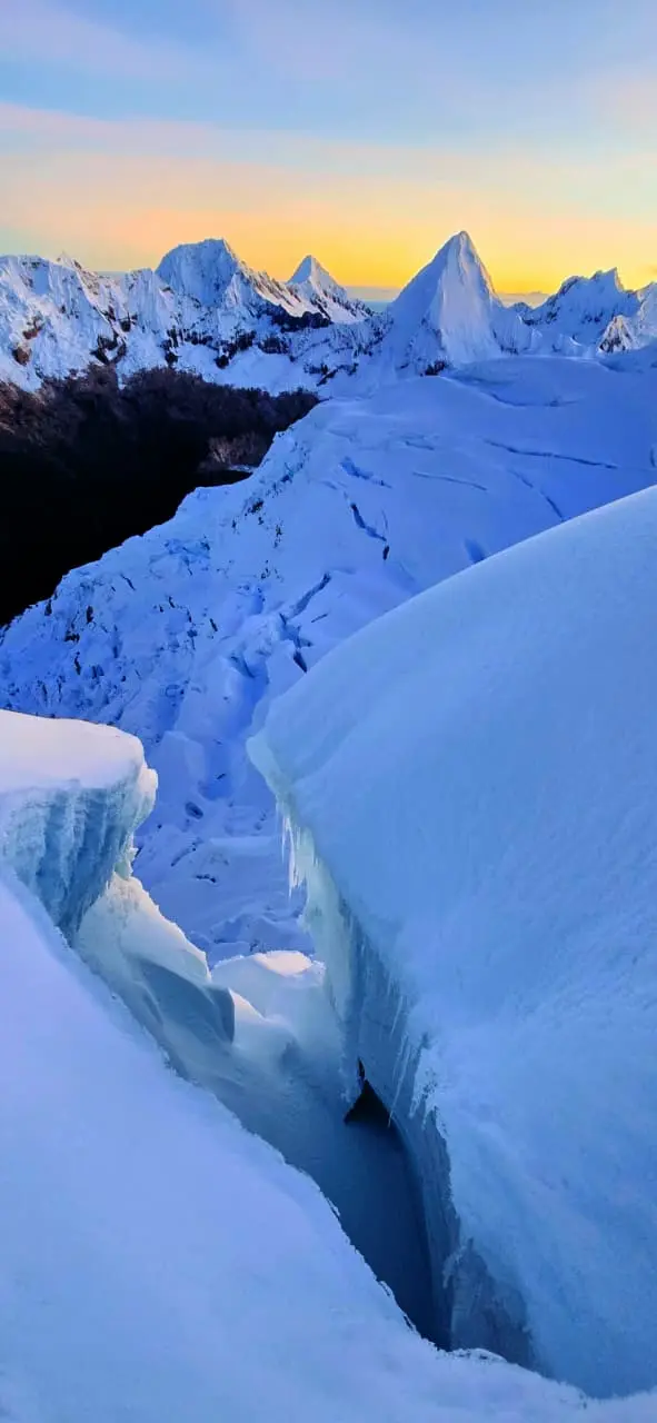 - 7:00 am: Meeting in Huaraz, personal equipment check, and distribution of technical equipment (crampons, ice axe, harness, helmet).